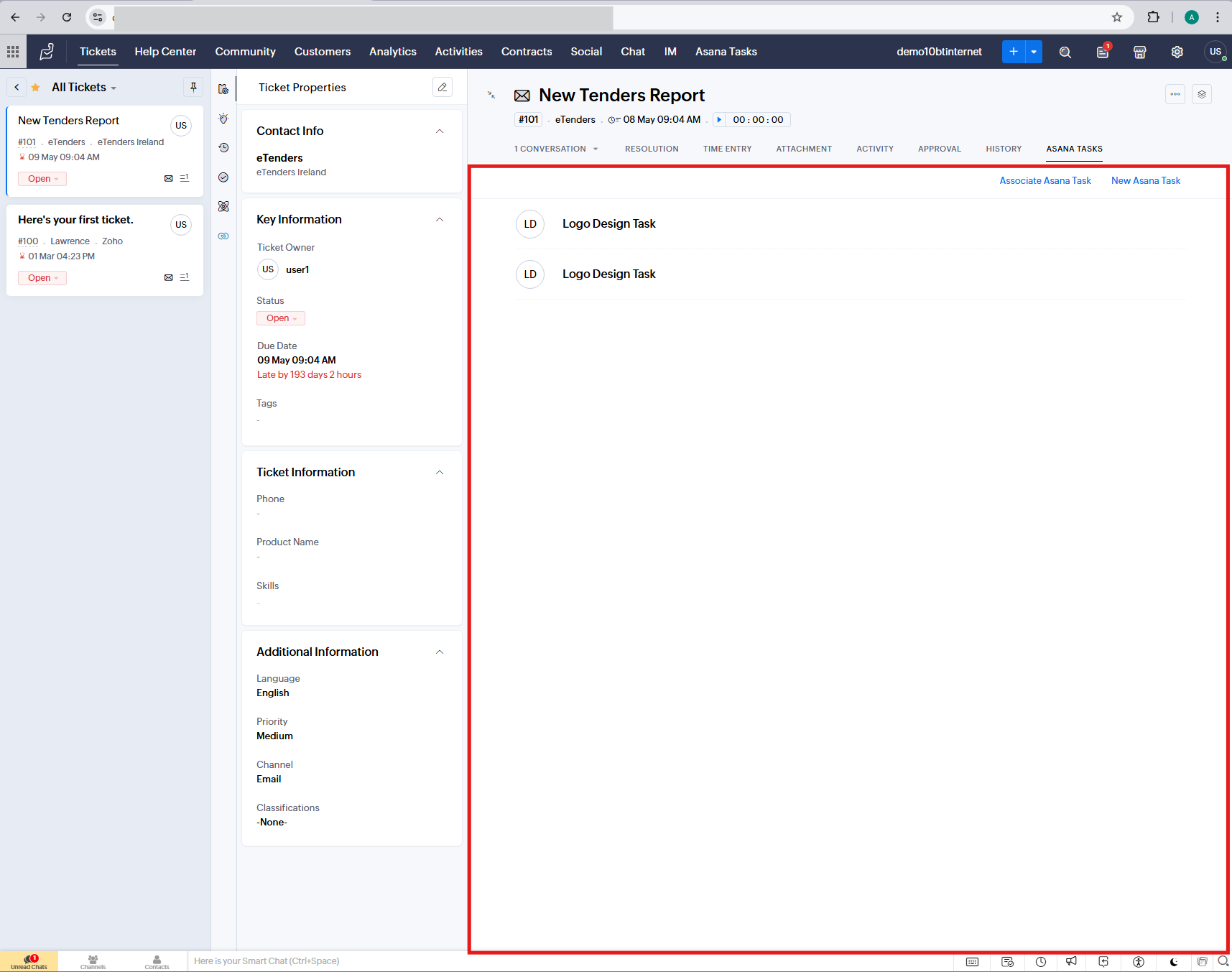I have a custom module in Zoho Desk called Asana Tasks, each task has a lookup to a Ticket.