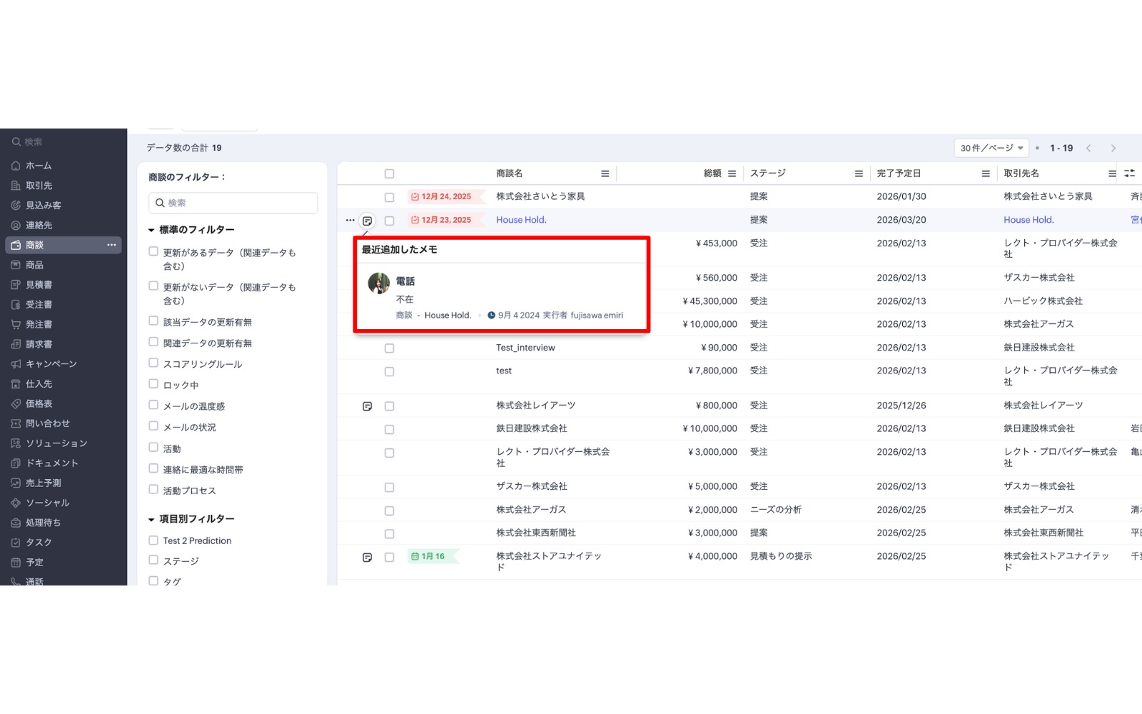今回は「Zoho CRM アップデート情報」の中から、新機能のデータ一覧画面でのメモのバッジ機能をご紹介します。