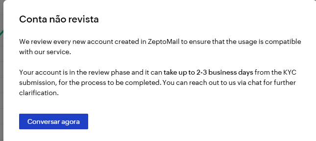 I registered my account on ZeptoMail to use the system, but the problem is that the verification period on Zepto's end has already passed and I have limited functionality.