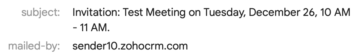 Hi Folks! When I send a meeting invite to someone, mailed by is under zoho's domain. Is there anyway to change it to my own domain?