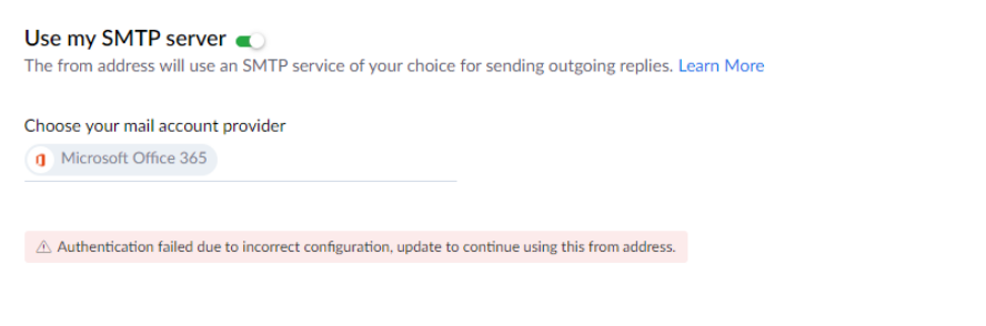 Authentication failed when trying to use a shared mailbox as a from address CRM