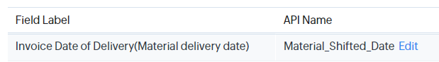 Expected Field Name: Invoice Date of Delivery (Material delivery date)
