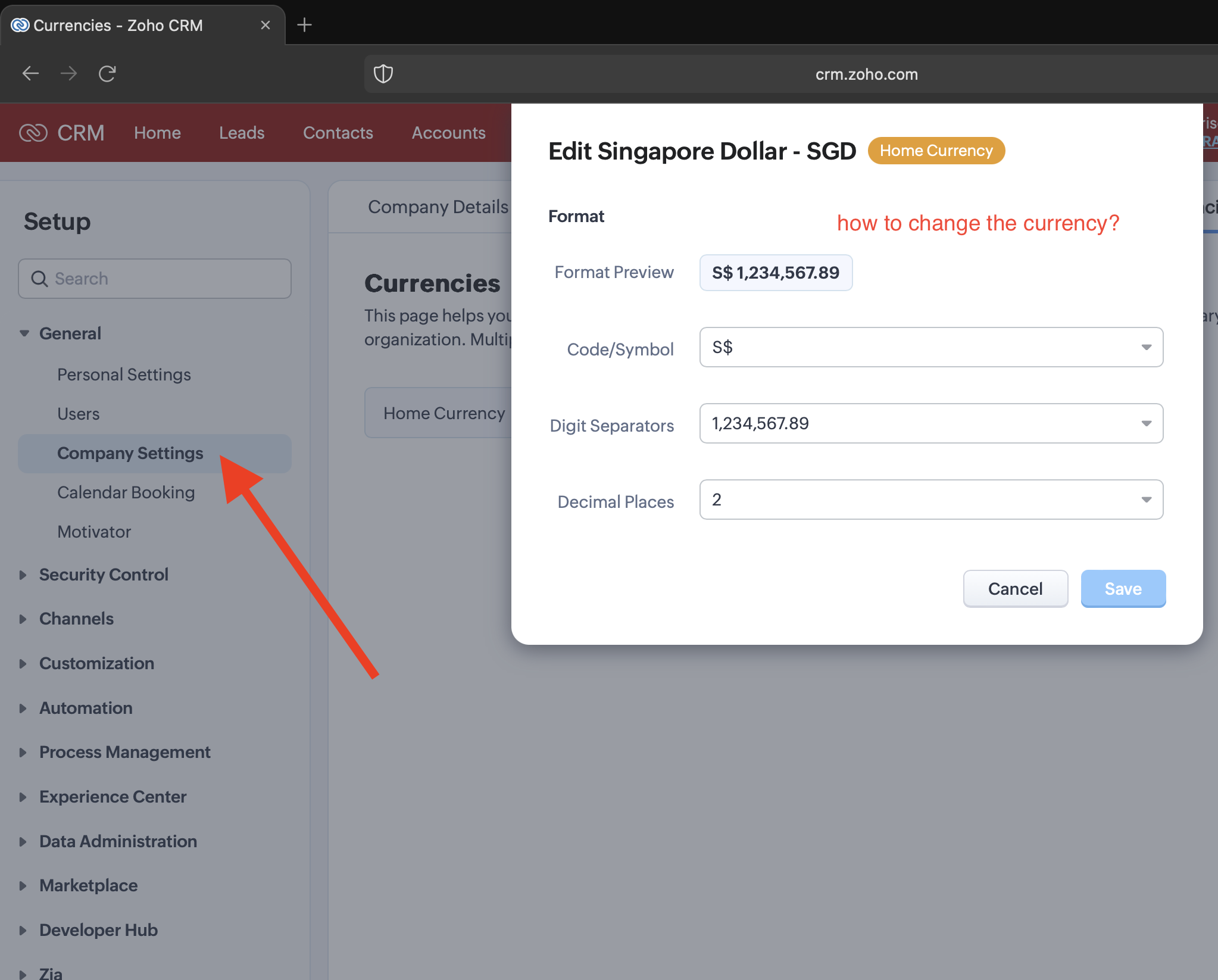 I think I need to change the target account to IDR first and then later, after I perform Copy Customization, I will change the currency back to SGD, but unfortunately I can't find a button to change the currency. like this