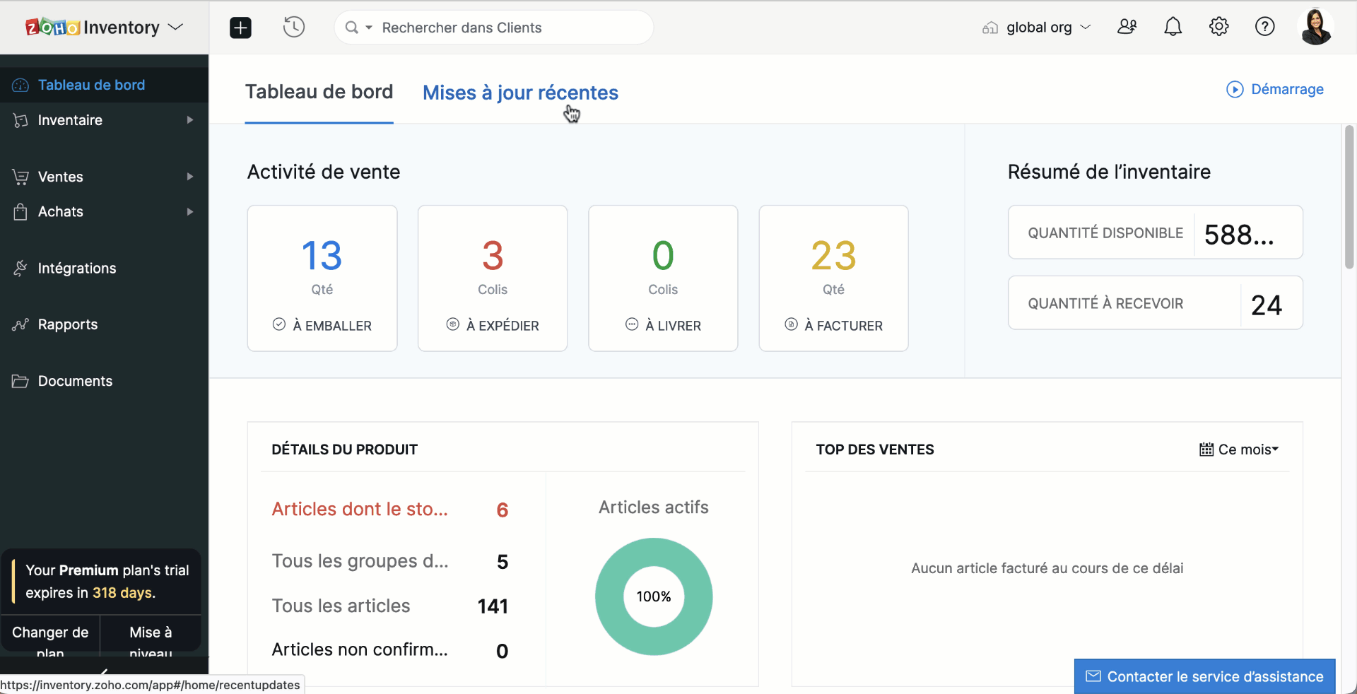 Bon à savoir : Vous devez avoir au moins deux entrepôts dans Zoho Inventory pour pouvoir transférer le stock.