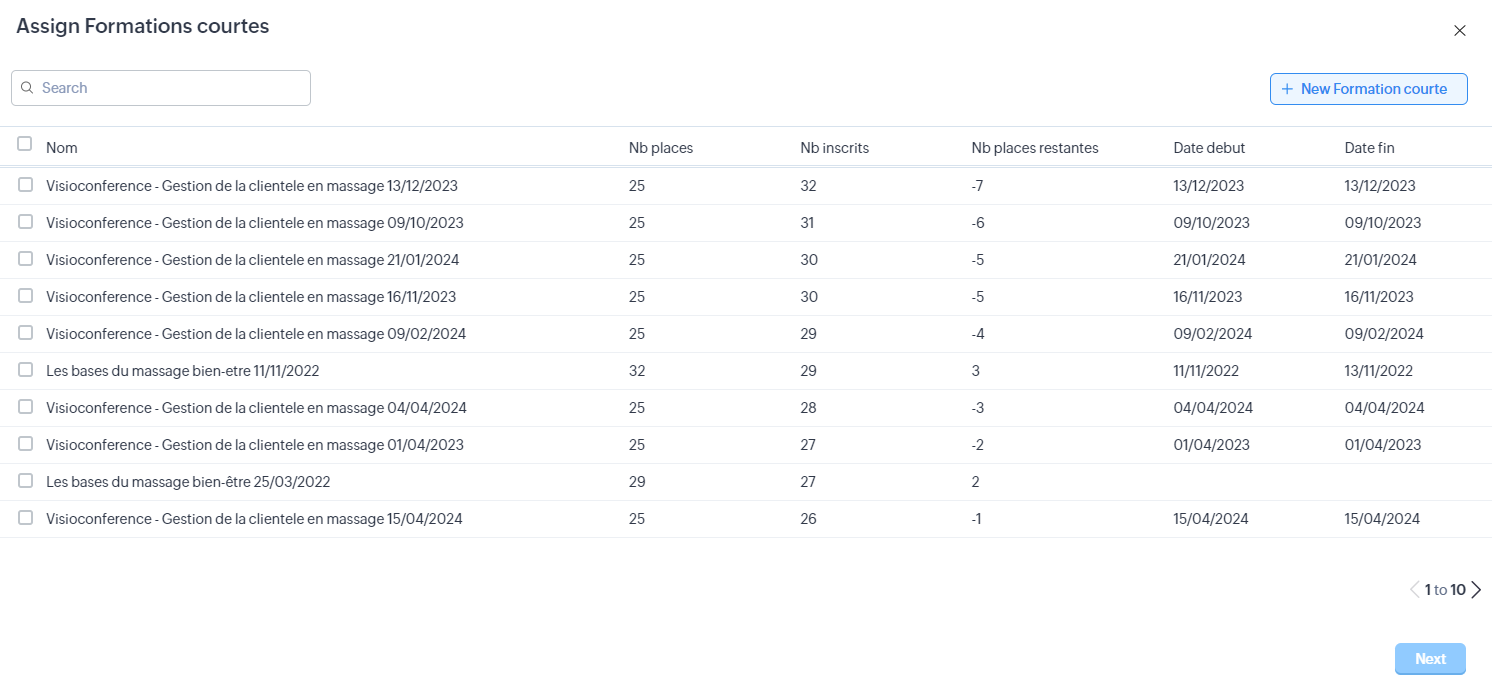 In my contact page, I have a module called "Sessions", when I assign a session to my contact it appears there.