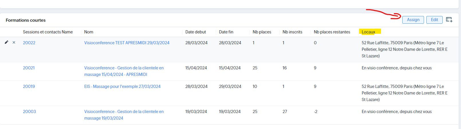 For example, I have the "Locaux" column which is visible, but when I click on "assign", this column is no longer visible...