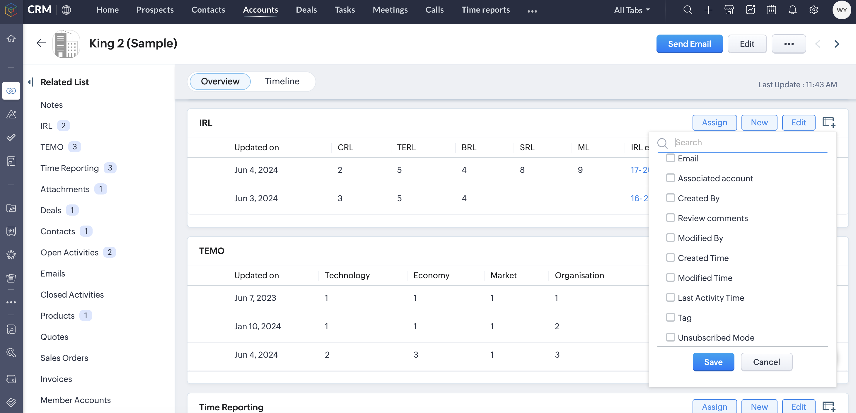I noticed that when I want to customise the view in an Account detailed view (see below), I am not able to select the fields implemented in the subform method (see second screenshot above).