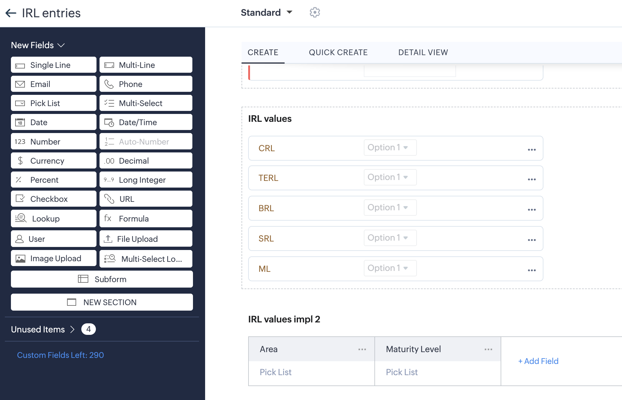 Method 1 was creating a few pick lists (in the section called "IRL values"),