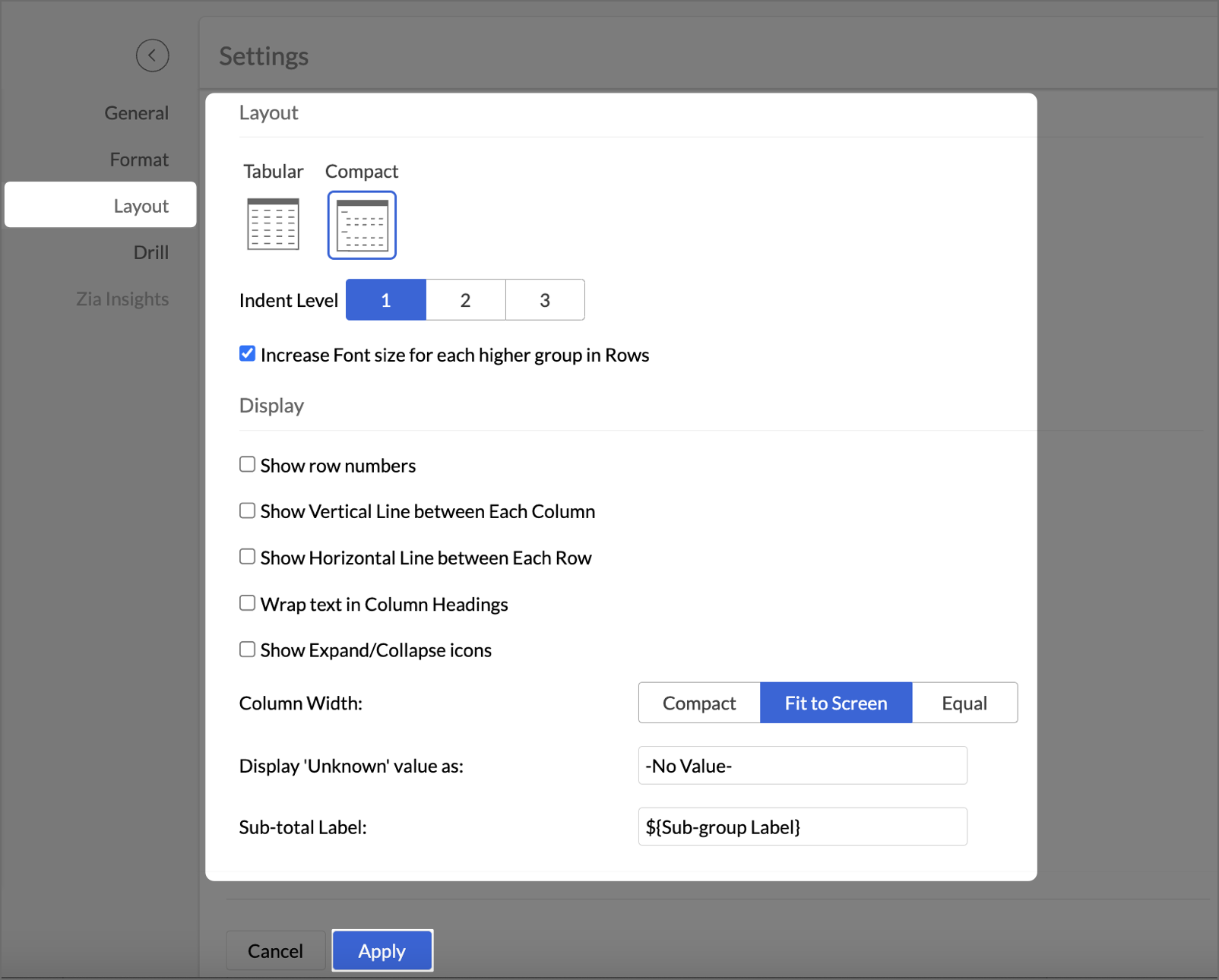 - Once the layout adjustments are made, click Apply to lock in the formatting.