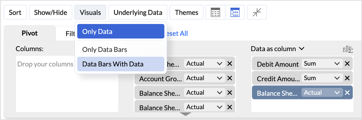 - Go to Visuals and select Data Bars With Data to improve the presentation of financial data, making it easier to interpret key insights visually.