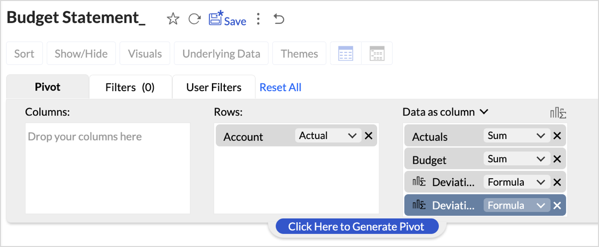 - Variance Percentage (Deviation %) - This column shows the percentage difference between the budgeted and actual amounts, highlighting under- or over-expenditure.