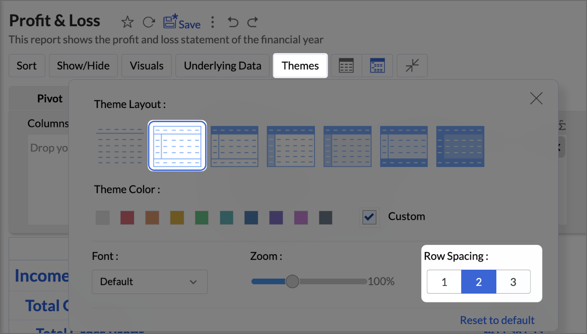 - Click Themes, and select the second theme. Set Row Spacing as 2.