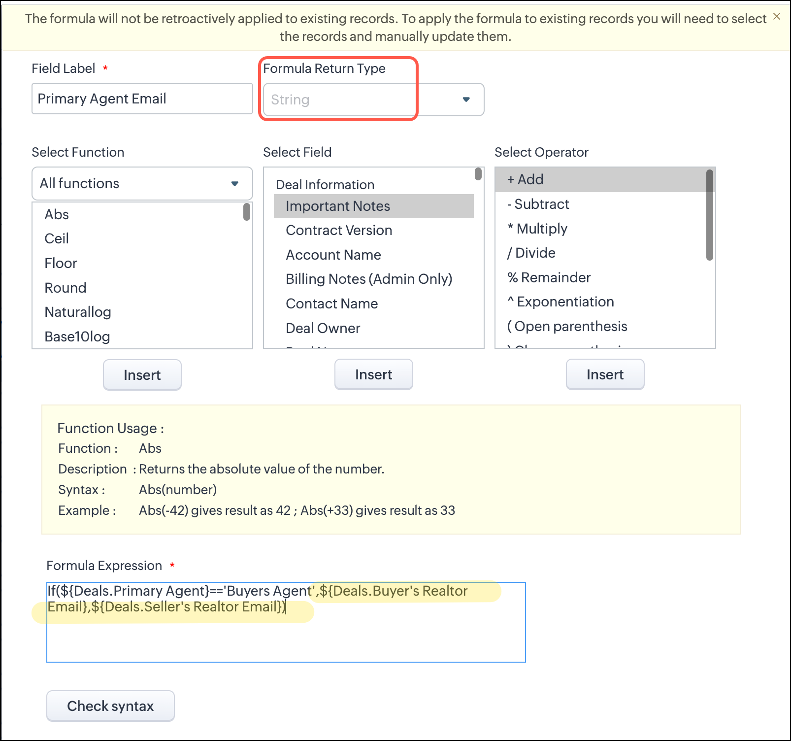 However, when try to put use the output of this formula field in Email Notifications, it is not showing up:
