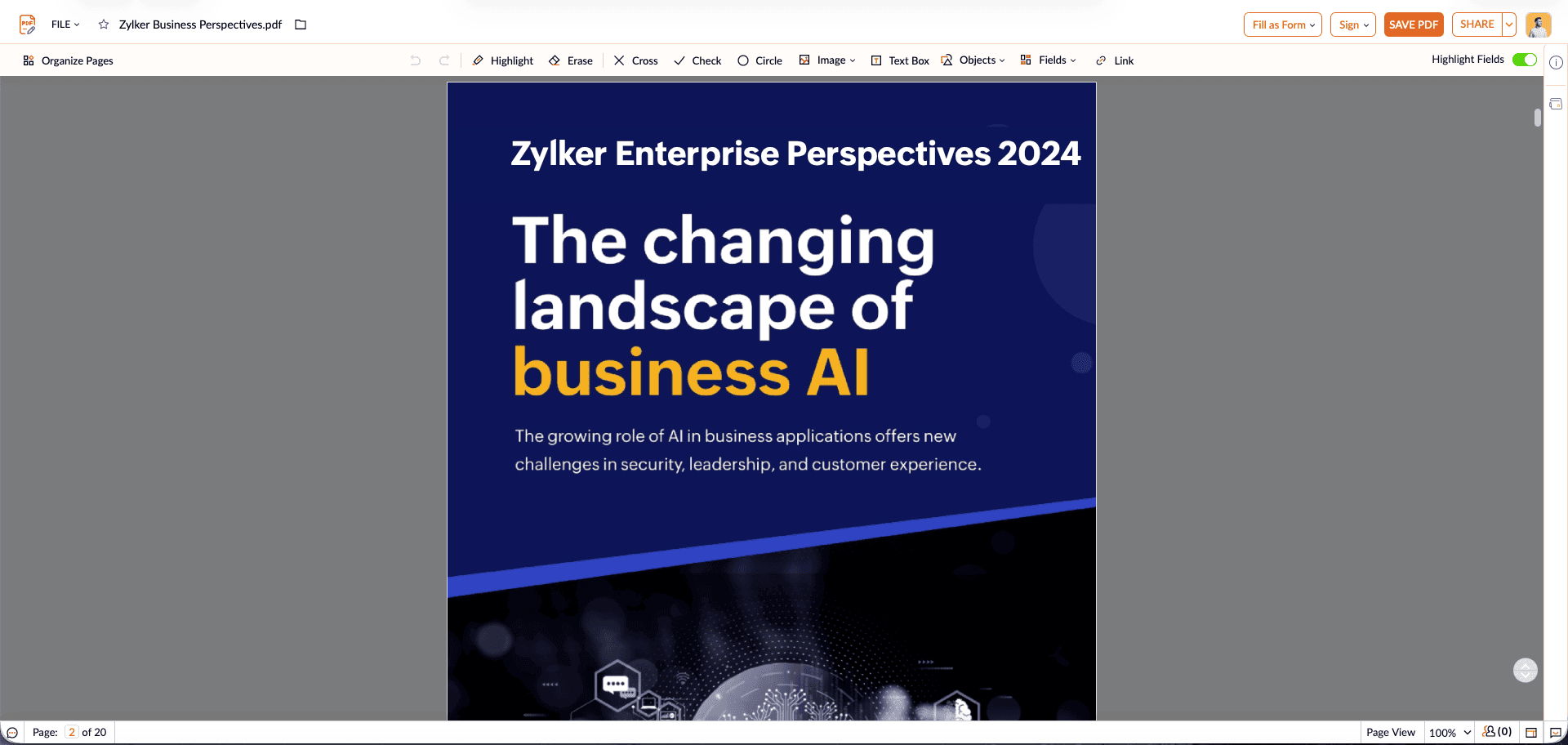 - Advanced PDF editing options: Turn your PDFs into fillable forms by inserting fillable fields and collect various types of data. Add signature fields and collect e-signatures using your preferred sign service. You can also fill and sign PDFs from within Zoho PDF Editor. Learn more.
