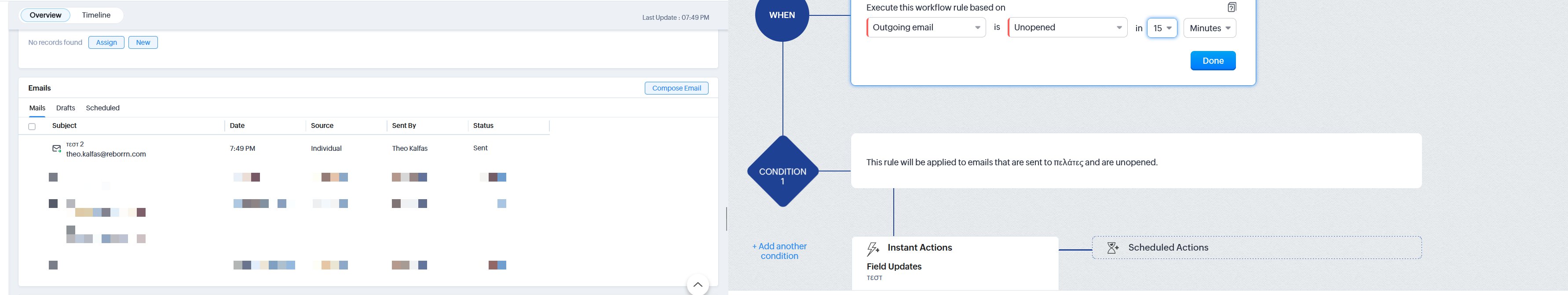 How can I trigger a custom function if a CRM email is not opened after few hours?