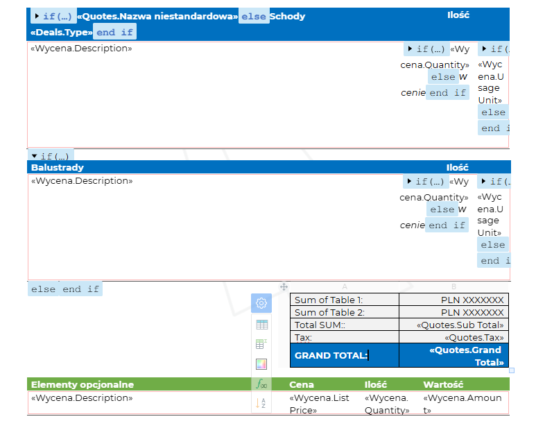 I've attached a screenshot showing both filtered tables. Any solution is welcome—whether it's in CRM fields, Writer templates, or automation.