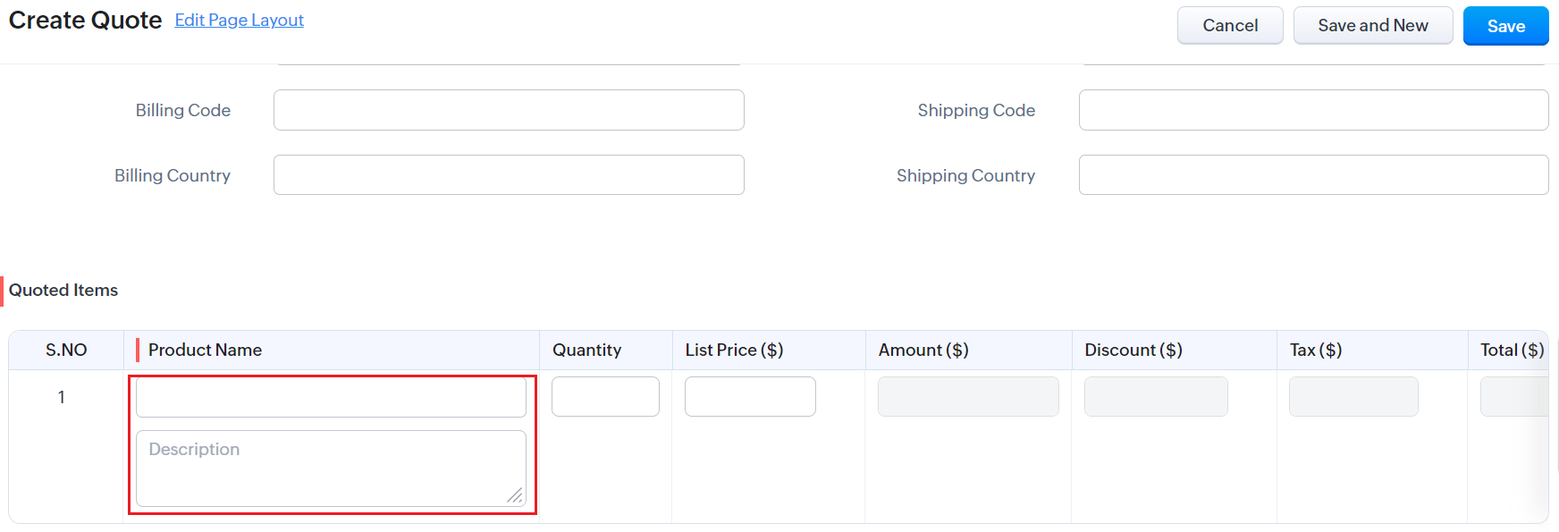 I see the subform of module [Quote] , the fields [Product Name] and [Description] is in the same column at one row.