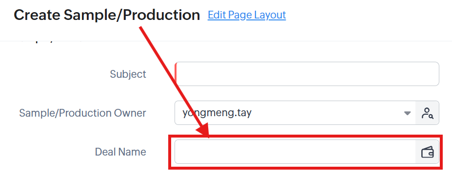I want to be able to pull the deals field which is a lookup field from one module to another, which in this case i want to pull from the module purchase orders to Sample/product.