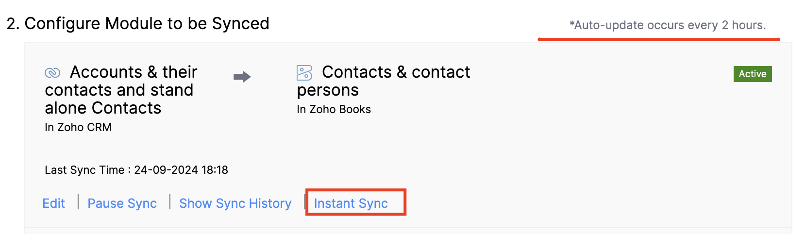 How to reduce sync time between ZOHO CRM and Books? Can't Accountant do Manual Sync?