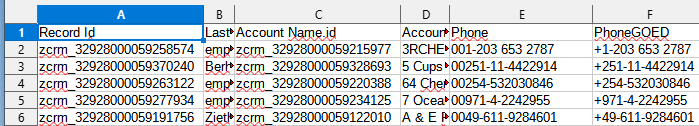 I have extracted from Zoho a file containg Zoho Id's with phones being (example) 0091-1234567
