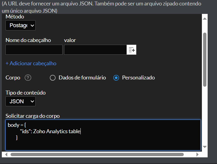 Importar dados de API (JSON) usando método POST e passando outra tabela como parâmetro