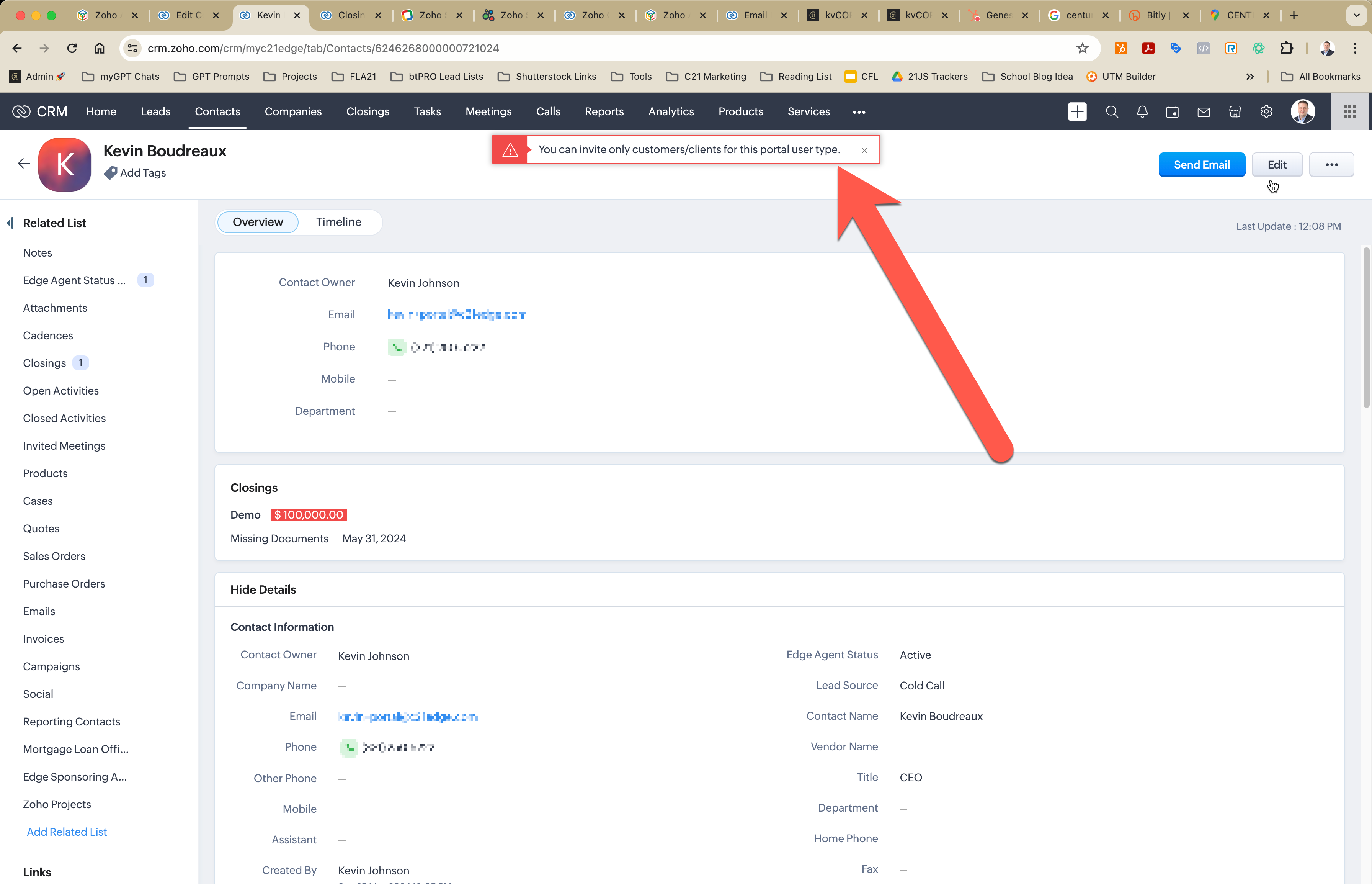We are building out our Zoho CRM, and I've built out a customer portal; however, I've run into a wall. I created a contact record and attempted to invite the contact to the portal and received the error message "You can invite only customers/clients for this portal user type." I am not trying to invite a lead or a user; it's a contact. So what makes a contact a "customer/client" in the eyes of the CRM? There is an attached deal to the contact record as well.