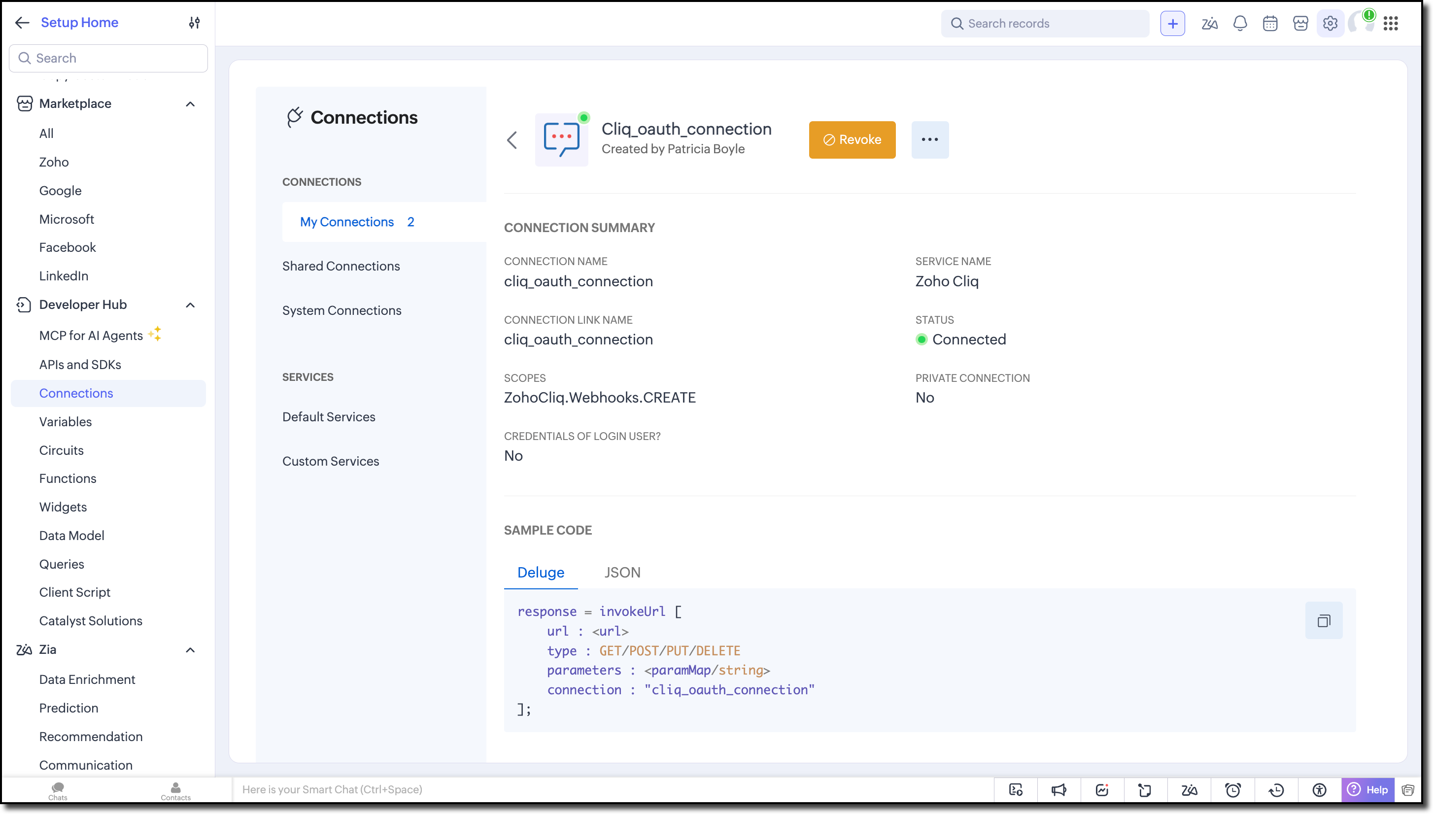 1. Create Connections in Zoho CRM