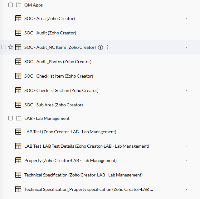 Dears, How can I remove the suffix in parentheses? These tables are synced from Zoho Creator and are treated as system tables, so their names cannot be changed. This issue makes the aggregation formulas look awful.