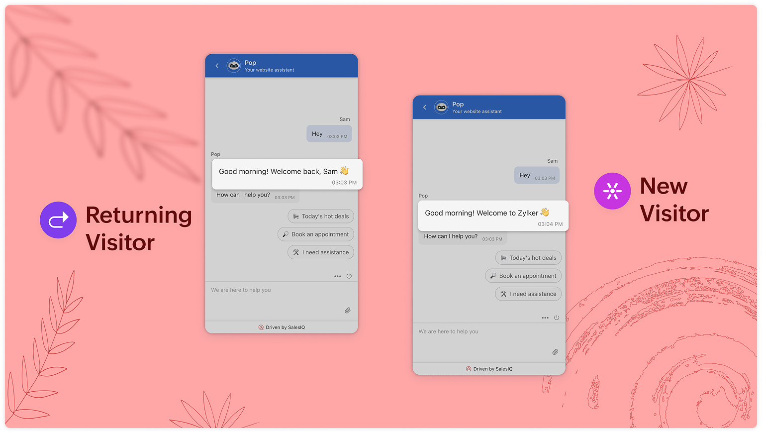• For returning visitors: "Good morning! Welcome back, <visitor name> 👋"