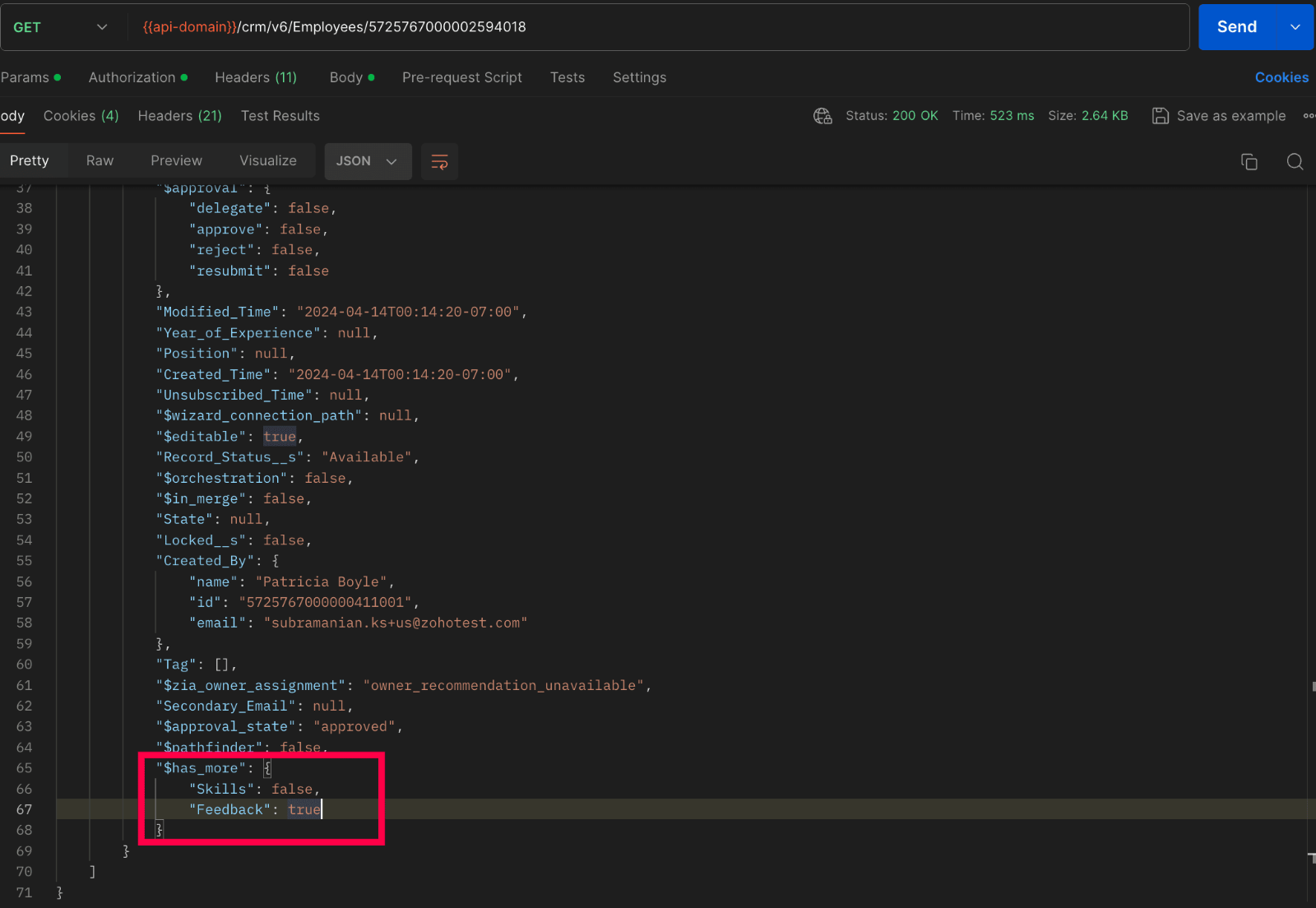 { "callback": { "method": "post" }, "query": { "module": { "api_name": "Employees" }, "file_type": "ics" } } |