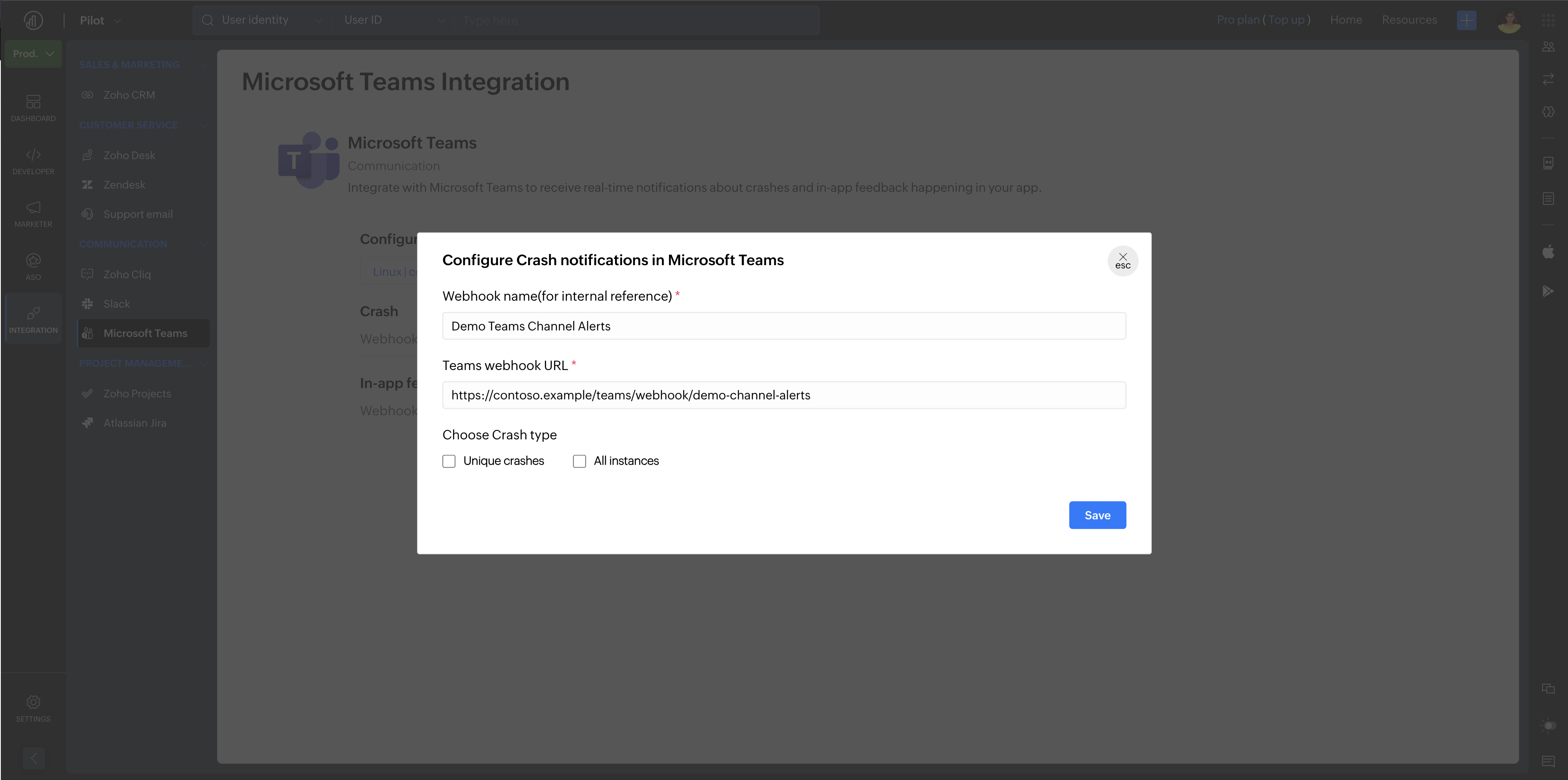 That is why the Microsoft Teams integration in Zoho Apptics is a valuable addition for product teams.