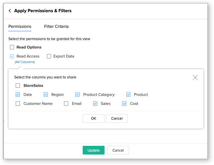 So far restricting selective columns is available only while sharing. Now you can publish selected columns from your table. This enables you to control what data your users get to see. This will particularly be helpful in case you have sensitive data in your table.