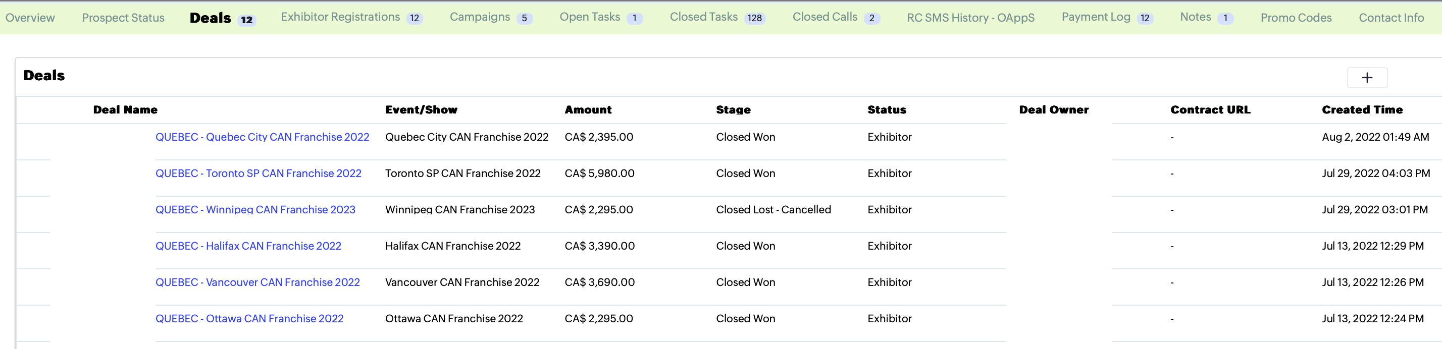 DEAL TAB has 12 deals n the example below. I want to have the option to sort by Created time or Event Name