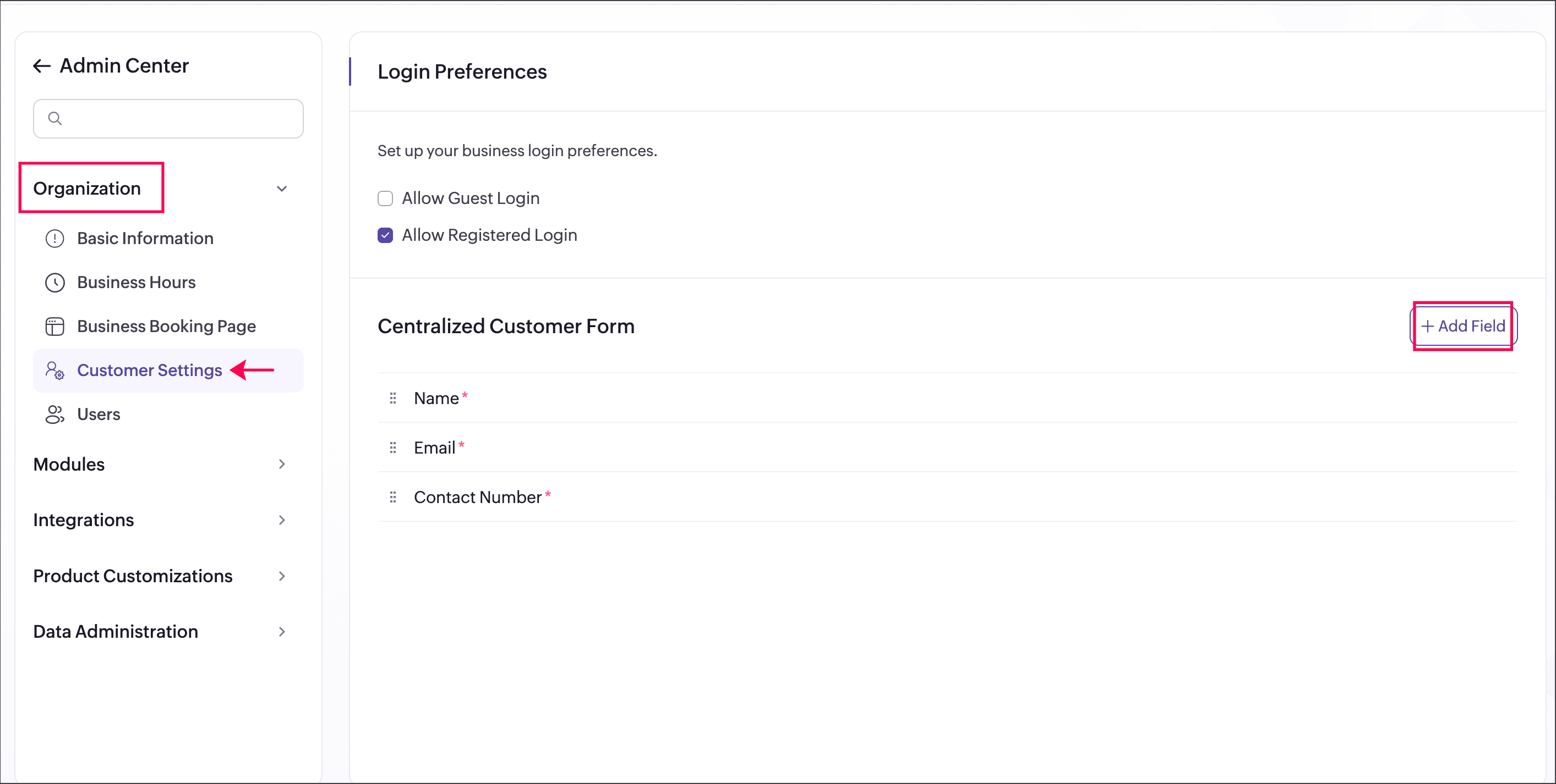 You can enable the Centralized Customer Form from Admin Center