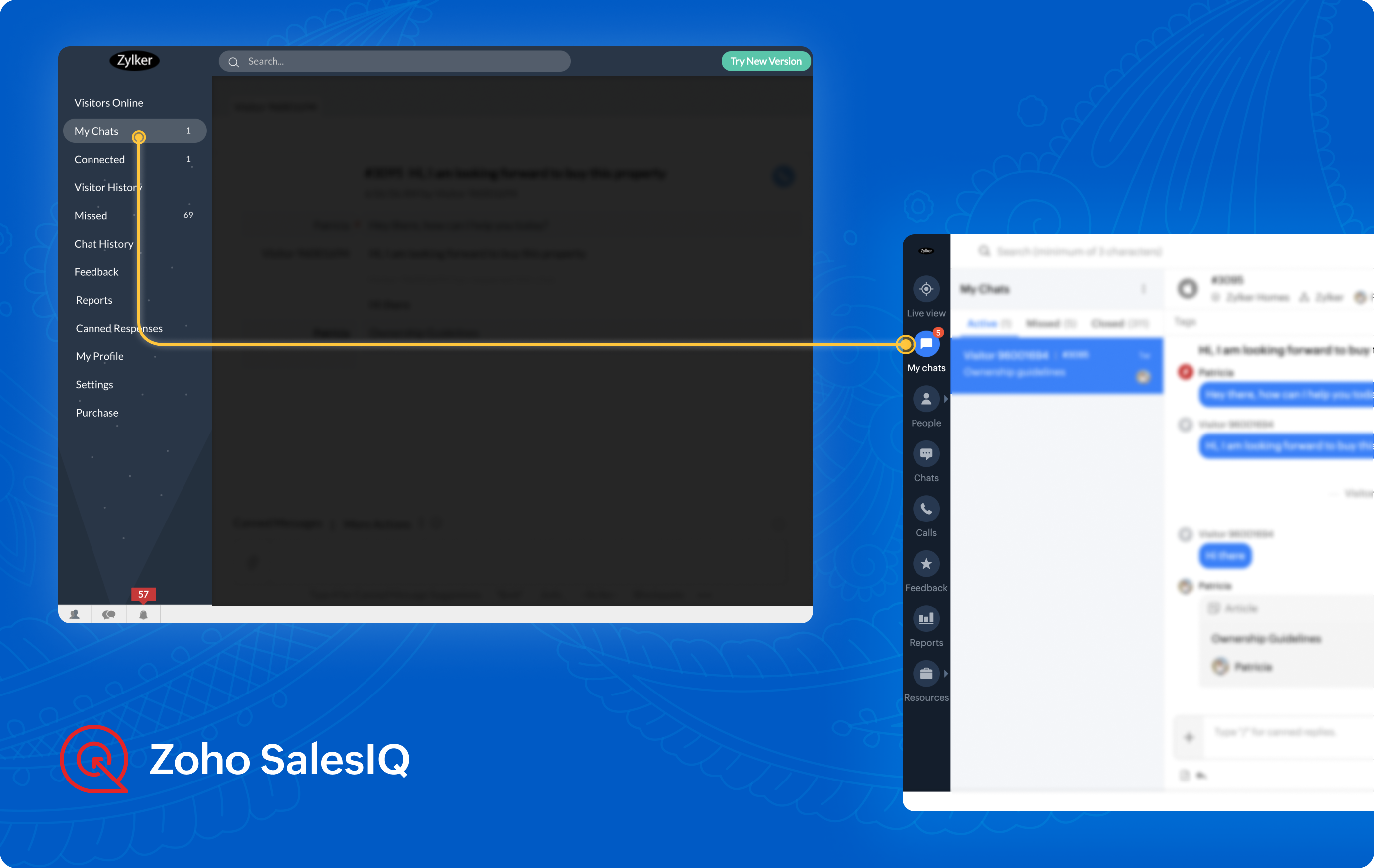 In the old SalesIQ version, we used tabs to switch between multiple ongoing chats. Now, we introduced Chat lists to get to the desired conversation with ease.