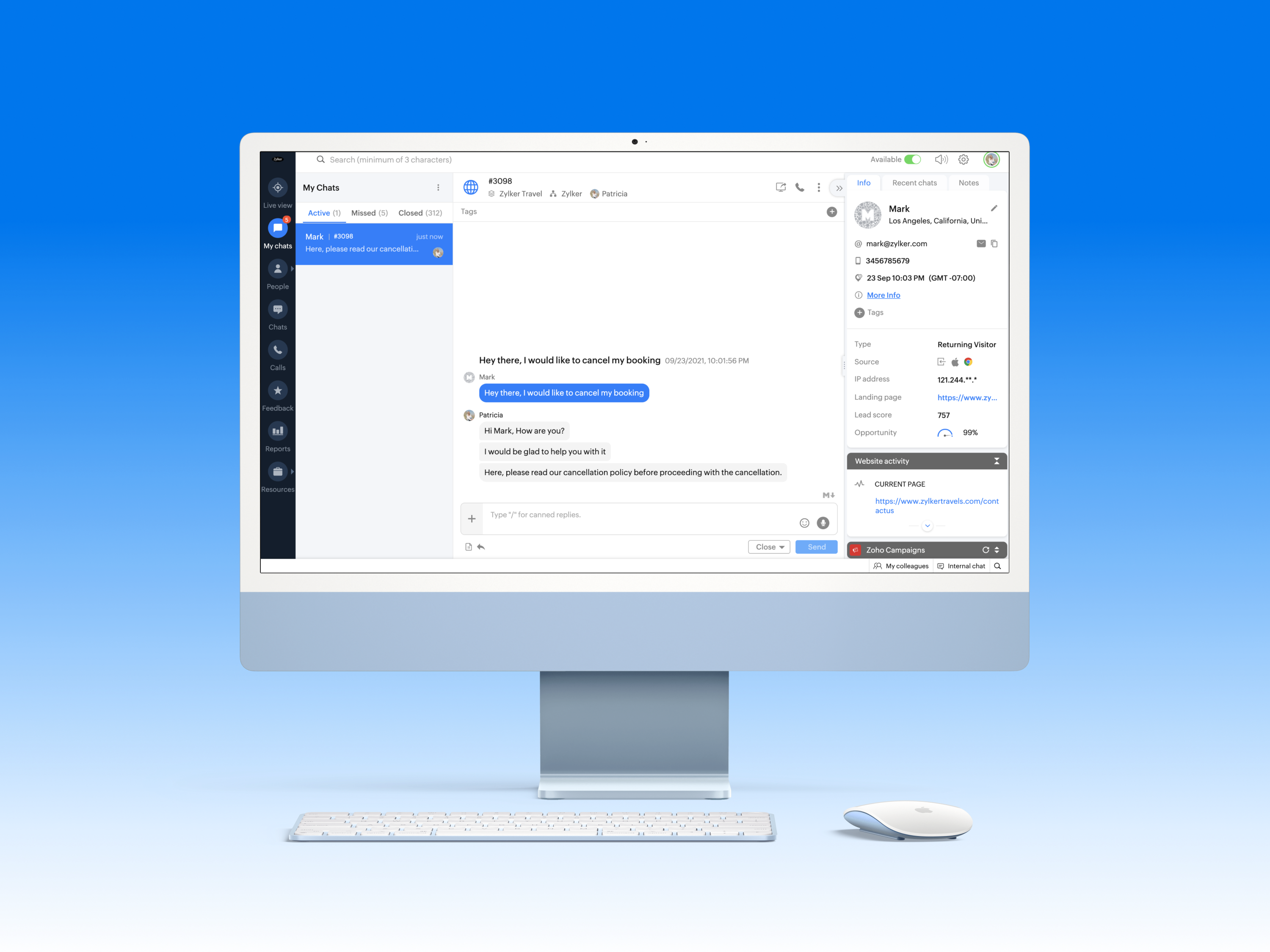 Managing your ongoing conversation or chats in your portal is made simple! The dedicated My chats option on the dock at the right side of the SalesIQ dashboard will now help you to reduce the friction between switching between multiple menus to access your conversation. All the conversations you had with the visitor will be listed here.