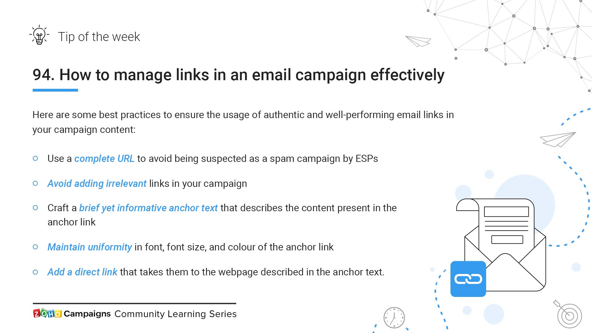 In this week's tip, let us look at the various best practices you must follow to get better response to the links included in your campaign.