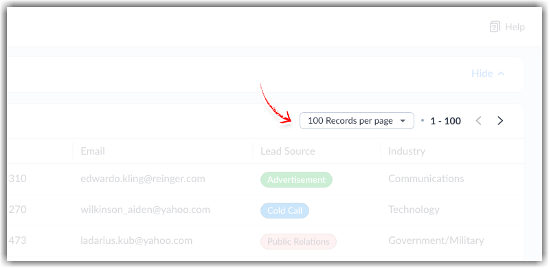 • The records per page dropdown and the pagination buttons have been relocated to the top-right corner of the records section.