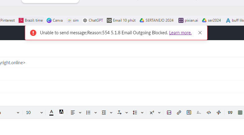 I just sent a few emails, but for some reason I'm getting this error and can't send emails anymore. Please help me fix it.