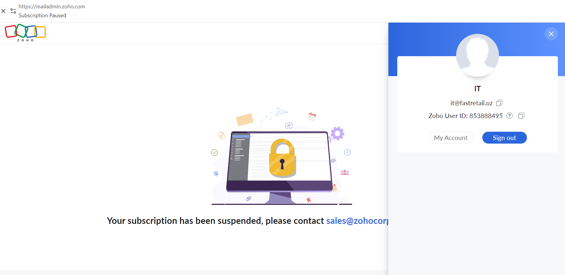 email accounts on the domain @fastretail.uz have been blocked since this morning Zoho User ID: 853888495. Could you please send the invoice we need to pay along with the response to globalmaketing8000@gmail.com as soon as possible? This is a critical incident for us.