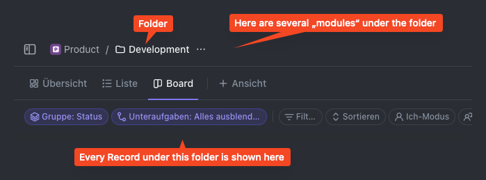 I think it would make sense to have a unified view for all modules under a folder. This is a feature that ClickUp has, which is quite helpful.