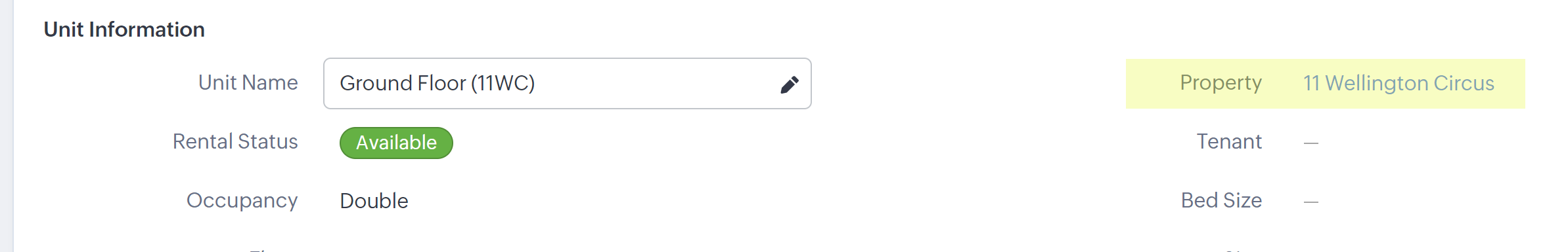 Within the Property Module (11 Wellington Circus from above) we can see the Linked Units & Tenants...