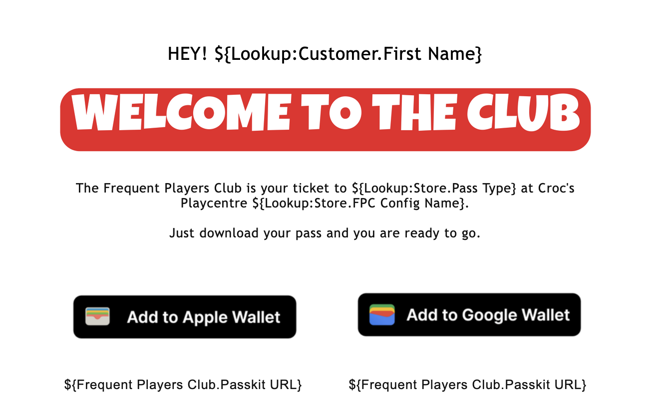 We are trying to have the Add to Apple Wallet & Add to Google Wallet become a link to their member pass. The URL to this member pass is a field in the CRM profile.