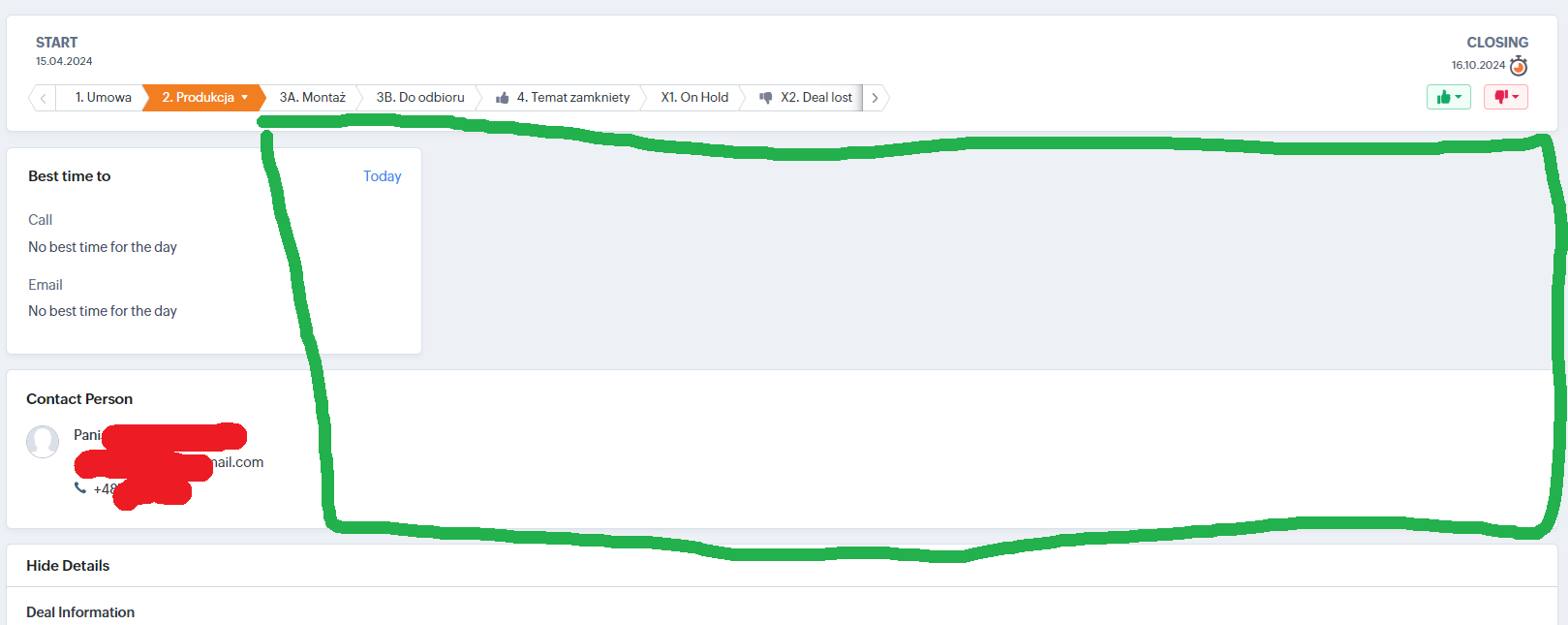 I'd like to show some information in the green space by adding it OR remove "Best time to" and "Contact Person" Info all together so it doesn't take that much of a space.