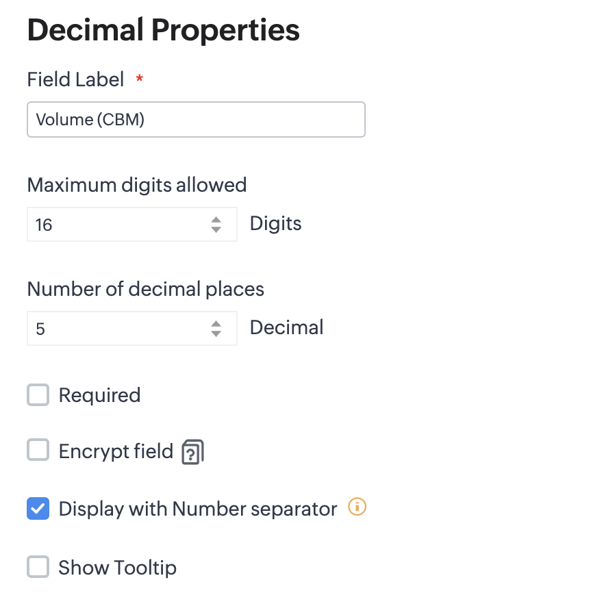 I have a decimal field and here is the properties