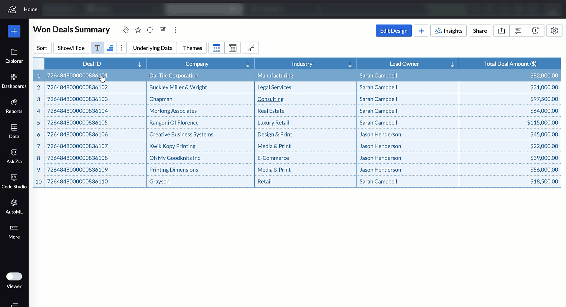 Connect Zoho ERP with Zoho Analytics to analyze your core business processes end-to-end. From procurement and production to finance and distribution, build comprehensive dashboards that give your leadership team a real-time pulse on operational performance.
