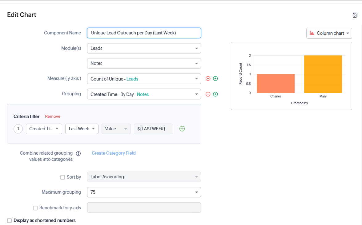 Zoho CRM - Create Report out of a Graph