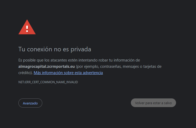 We’re experiencing an issue with the Zoho CRM Portal. When we try to access it, we receive an HTTPS connection error: net::ERR_CERT_COMMON_NAME_INVALID.
