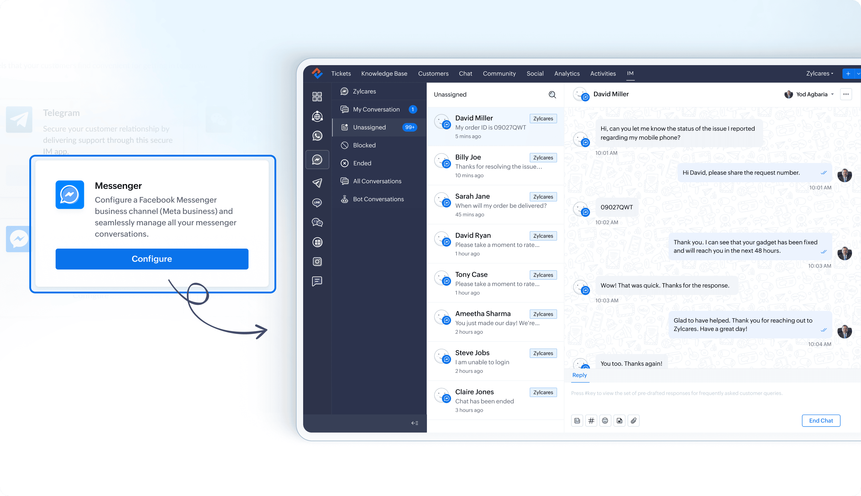Integrate Facebook messenger with Zoho Desk | Standard and above
