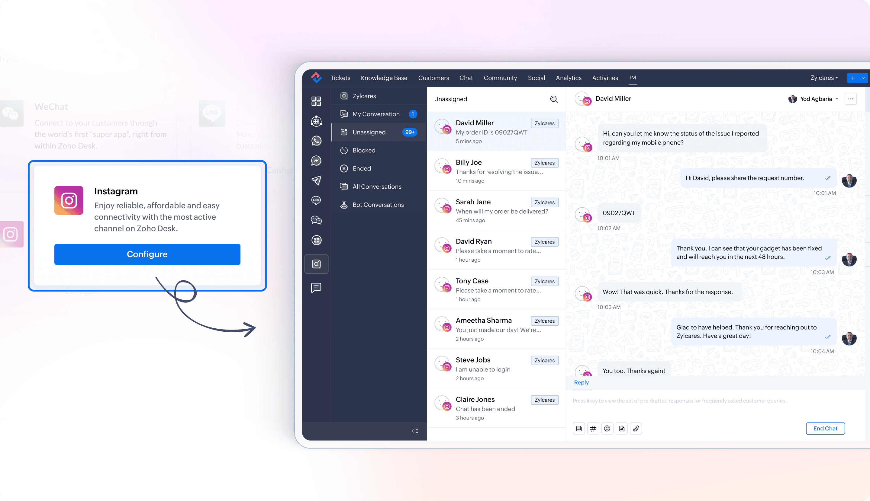 Integrating Instagram with Zoho Desk enables businesses to manage customer communications through their Instagram business accounts. This integration allows seamless message exchanges between customers and businesses, with conversations originating from Instagram posts, the Meta business page, or a website widget. For example, a retail clothing brand can integrate its Instagram business account with Zoho Desk to manage customer inquiries directly from its Instagram posts or DMs.